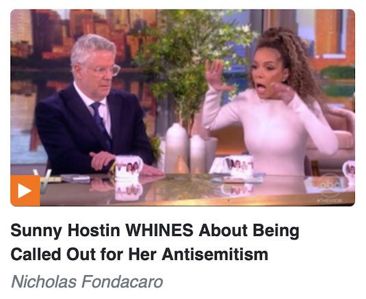 Nicholas Fondacaro gets paid by the Media Research Center to hate-watch "The View" -- and he delivers, falsely smearing co-host Sunny Hostin as "racist" and "anti-Semitic."